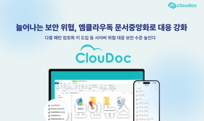 ‘클라우독’은 엠클라우독의 문서중앙화 솔루션으로, 사내 분산된 문서를 중앙 서버 한 곳에 저장해 관리할 수 있다. 문서가 개별 PC에 남지 않아 정보 유출과 랜섬웨어 등 각종 사이버 위협을 효과적으로 차단할 수 있다.
